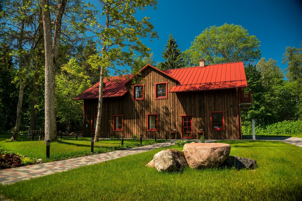 Estamos ubicados en las orillas del río "Malmute", rodeados de bosques y prados, donde nadie puede disfrutar del encanto de la naturaleza mientras se relaja en los sonidos del canto del río. Espacio cómodo y hermoso para relajarse y pasar las vacaciones. En la casa de vacaciones, también es posible calentarse en la sauna o relajarse en la bañera y luego enfriarse en el río. Una amplia zona verde donde se pueden organizar varias actividades físicas en la zona. Amplio patio y área de barbacoa. Estacionamiento gratuito. Sauna y bañera por un cargo adicional.