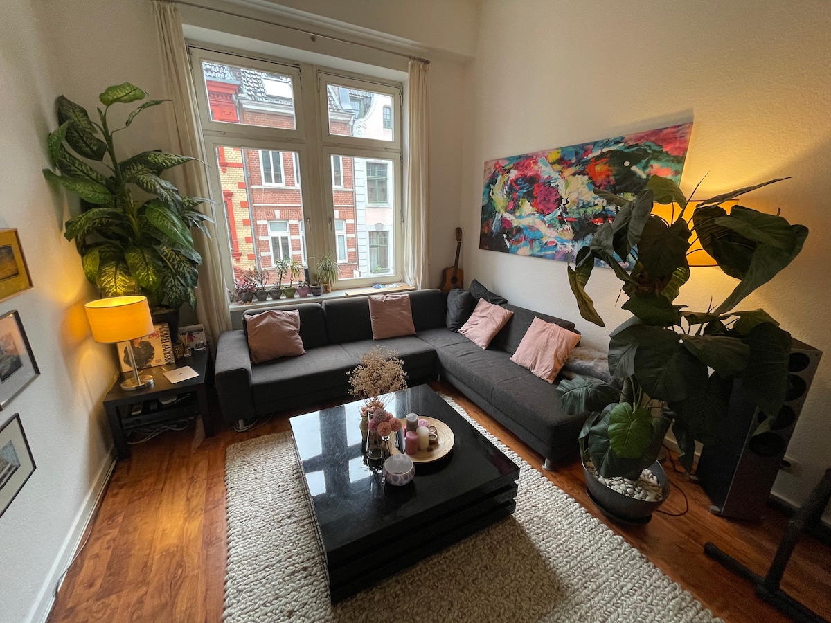 Estilo - Arte - Vida - Naturaleza Estos son los componentes que necesito para sentirme bien. Así, mi apartamento ático de diseño de 60 metros cuadrados está equipado con obras de arte, así como con un gran acuario y está completamente a vuestra disposición. Es limpio, luminoso, tranquilo, bien situado y fácil de disfrutar. El balcón oriental con exuberantes plantas y vistas despejadas es ideal para desayunar o para las noches cálidas. Cocina bien equipada, toldo y aire acondicionado disponibles.