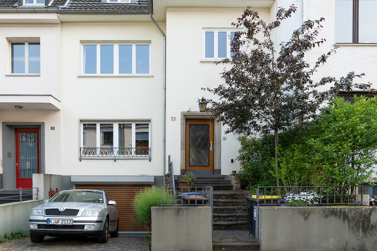 - Apartamento de aprox. 45 metros cuadrados totalmente renovado en 2016 con porche en las afueras de la gran ciudad. - 1x espacio de estacionamiento para huéspedes frente a la casa - Dormir tranquilo - Baño moderno con ducha a ras del suelo. - Buena conexión con Messe/Deutz (ver transporte), así como con el moderno, multicultural y alternativo distrito de Ehrenfeld. - A 20 minutos del centro de Colonia. - Conexión de tren S19 Technologiepark Müngersdorf (10 minutos a pie), línea de metro 3+4 (15 minutos a pie)