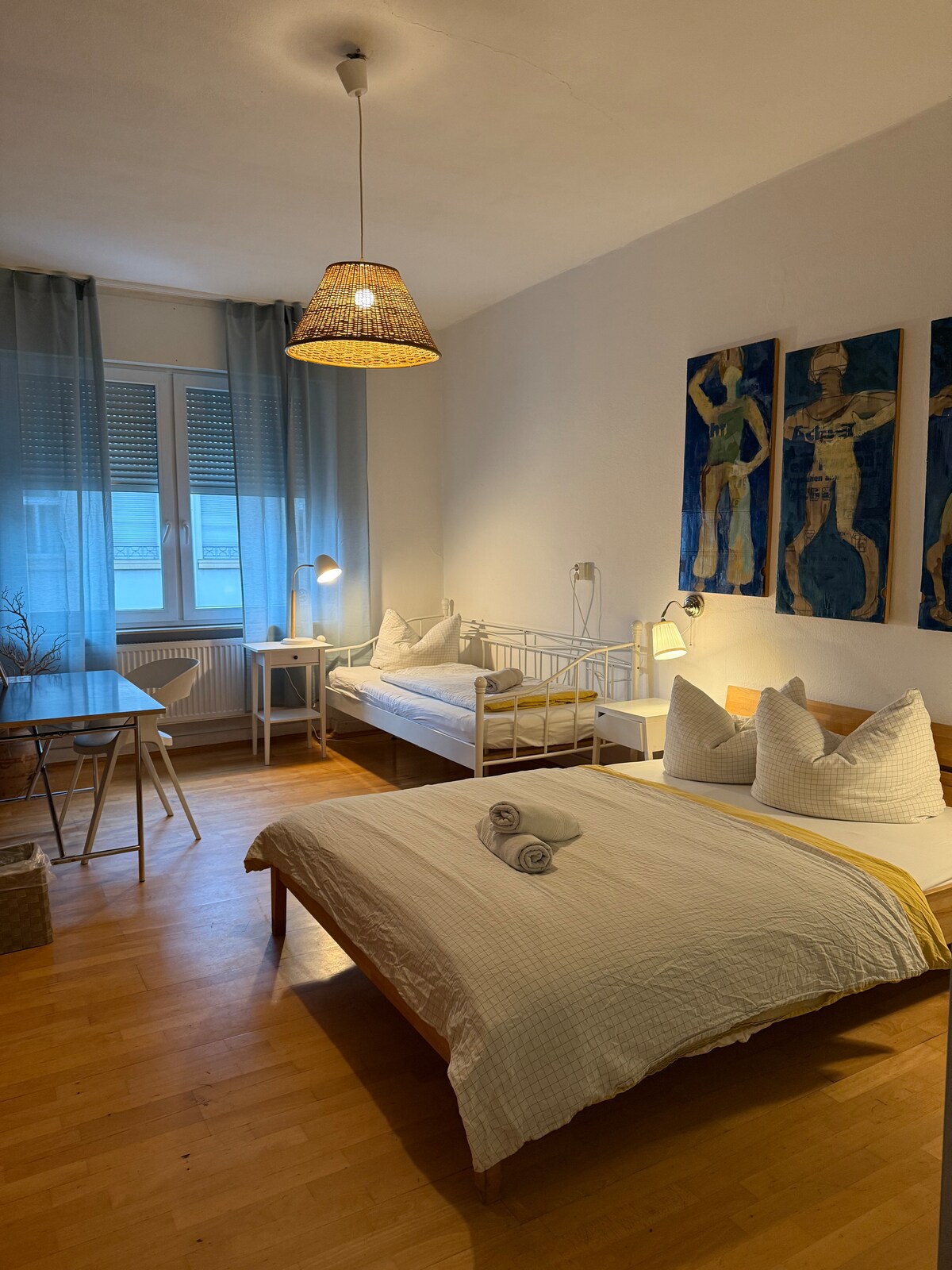 Tu acogedora habitación doble, céntrica y totalmente equipada. Bienvenido a nuestra acogedora habitación doble, perfecta para parejas, viajeros solitarios y viajeros de negocios. Te espera una cómoda cama doble. Utiliza nuestra cocina compartida, sala de estar y dos baños con cerradura por piso. Wifi gratuito incluido, por supuesto. Nuestra ubicación céntrica cerca de la estación principal de tren es inmejorable: todo lo que necesitas está a poca distancia a pie. ¡Nos vemos pronto!