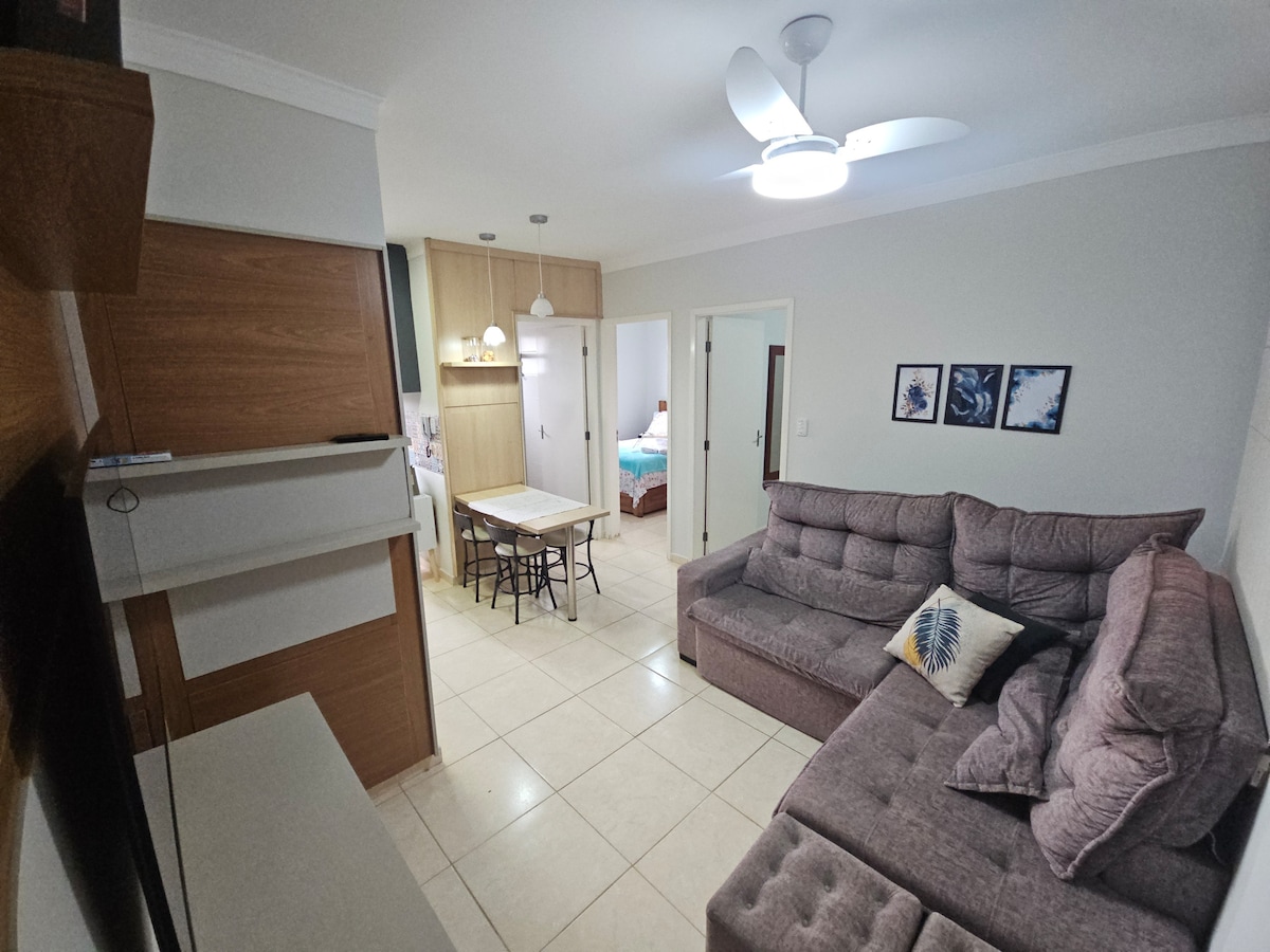 Apartamento para NO FUMADORES. Apartamento totalmente amueblado y decorado, cuenta con TV inteligente de 43” e internet, tres dormitorios con ventiladores y cama box, dos de ellos con aire acondicionado, ropa de cama (sábana baja, sábana encimera, fundas y almohadas *no tenemos manta), toalla de cara y baño, tabla y plancha están disponibles, así como secador de pelo. Fácil acceso, cerca de la rod. anhanguera. Tienda con conveniencia en la misma calle, supermercados y farmacias muy cerca.