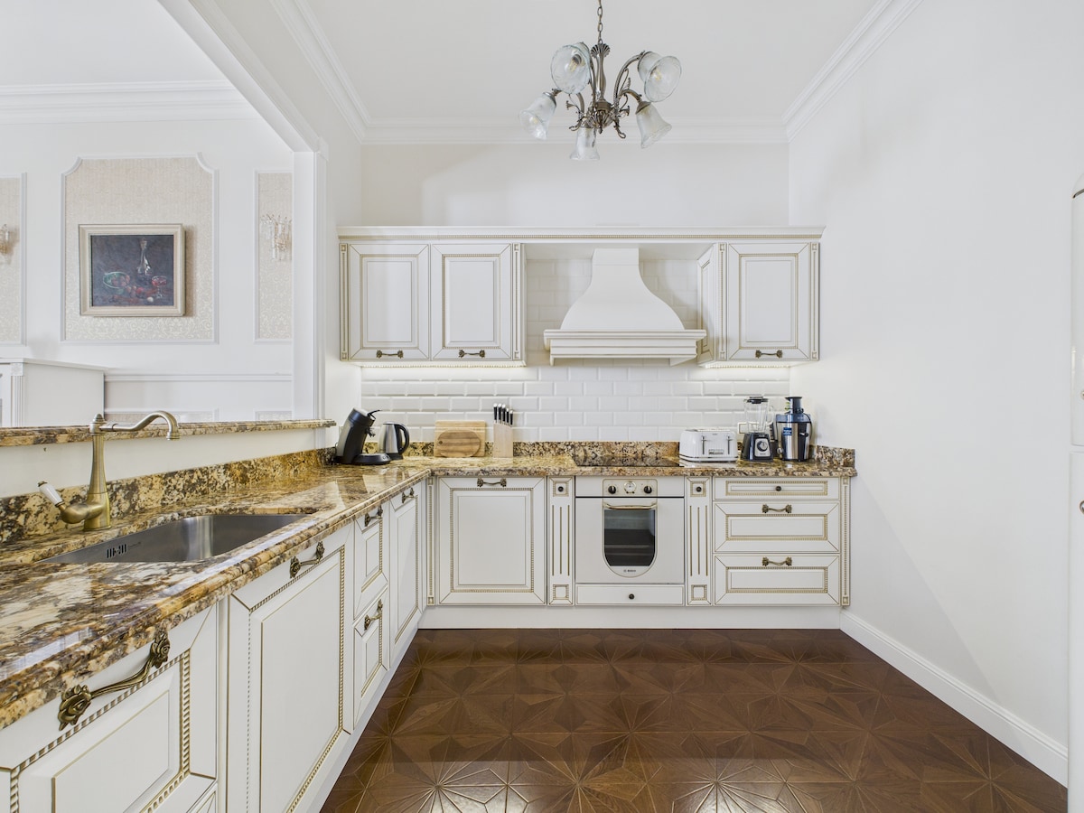 Este hermoso apartamento está situado en la exclusiva Kipsala, a tiro de piedra del río Daugava y a 5 minutos del centro en coche. Los dos dormitorios tienen cómodas camas dobles. La cocina está totalmente equipada con todo lo necesario. Y después de un intenso día de turismo, puedes reclinarte en la lujosa bañera para 2. Todo el apartamento está insonorizado y tiene cortinas opacas y absorbentes de sonido.