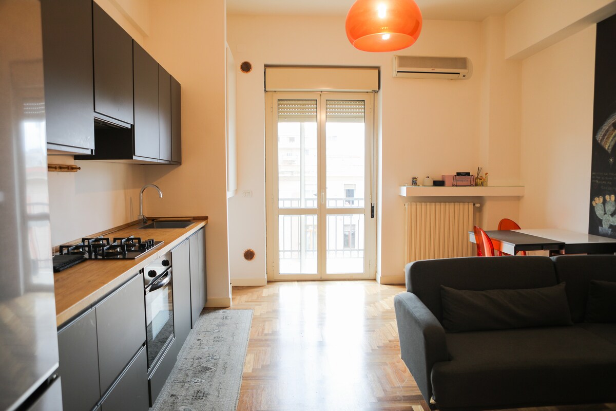 Situado en Corso Roma, en el corazón del centro histórico y a pocos pasos del mar. Composición: - Dormitorio con cama doble - Sala de estar con sofá cama, TV inteligente y mesa de comedor. - Cocina totalmente equipada. - Moderno baño Comodidades incluidas: - Wifi gratuito. - Aire acondicionado - Televisión inteligente - Lavadora y secadora gratuita. Perfecto para parejas, familias o grupos pequeños que quieran experimentar el centro de la ciudad sin sacrificar la proximidad a la playa.