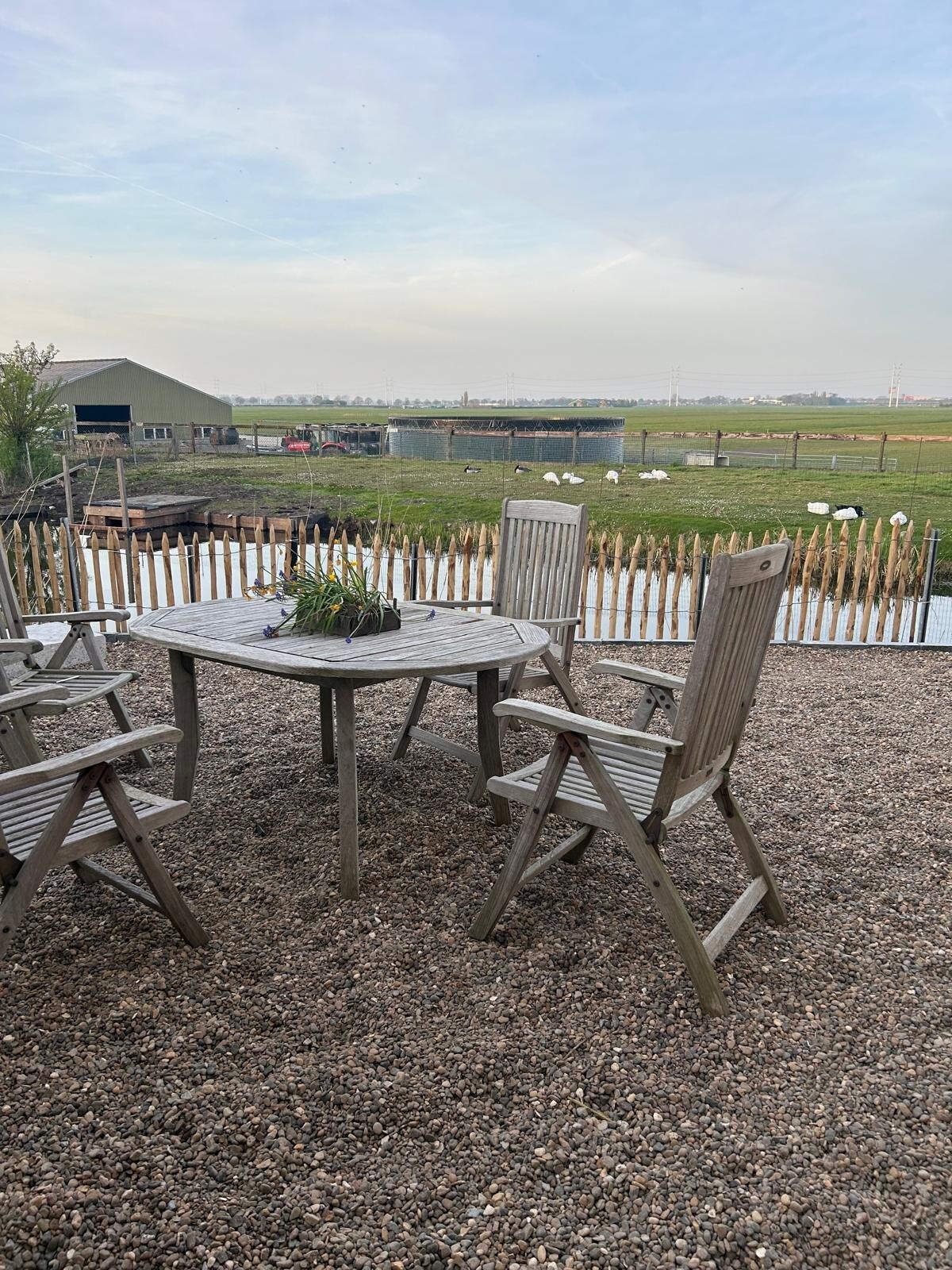 Nuestro B&B está equipado con todas las instalaciones modernas, como una cocina moderna, iluminación Philips Hue, TV inteligente y Quooker. La acogedora terraza se completa con un jacuzzi de lujo y una estufa de leña. El B&B, con un gran jardín privado y vistas despejadas, está completamente separado de la granja por una valla y solo es accesible para usted como huésped. Desde la sauna finlandesa de barril en la terraza contigua se puede contemplar las pintorescas praderas de la ciudad. Un delicioso desayuno a su gusto es opcional.