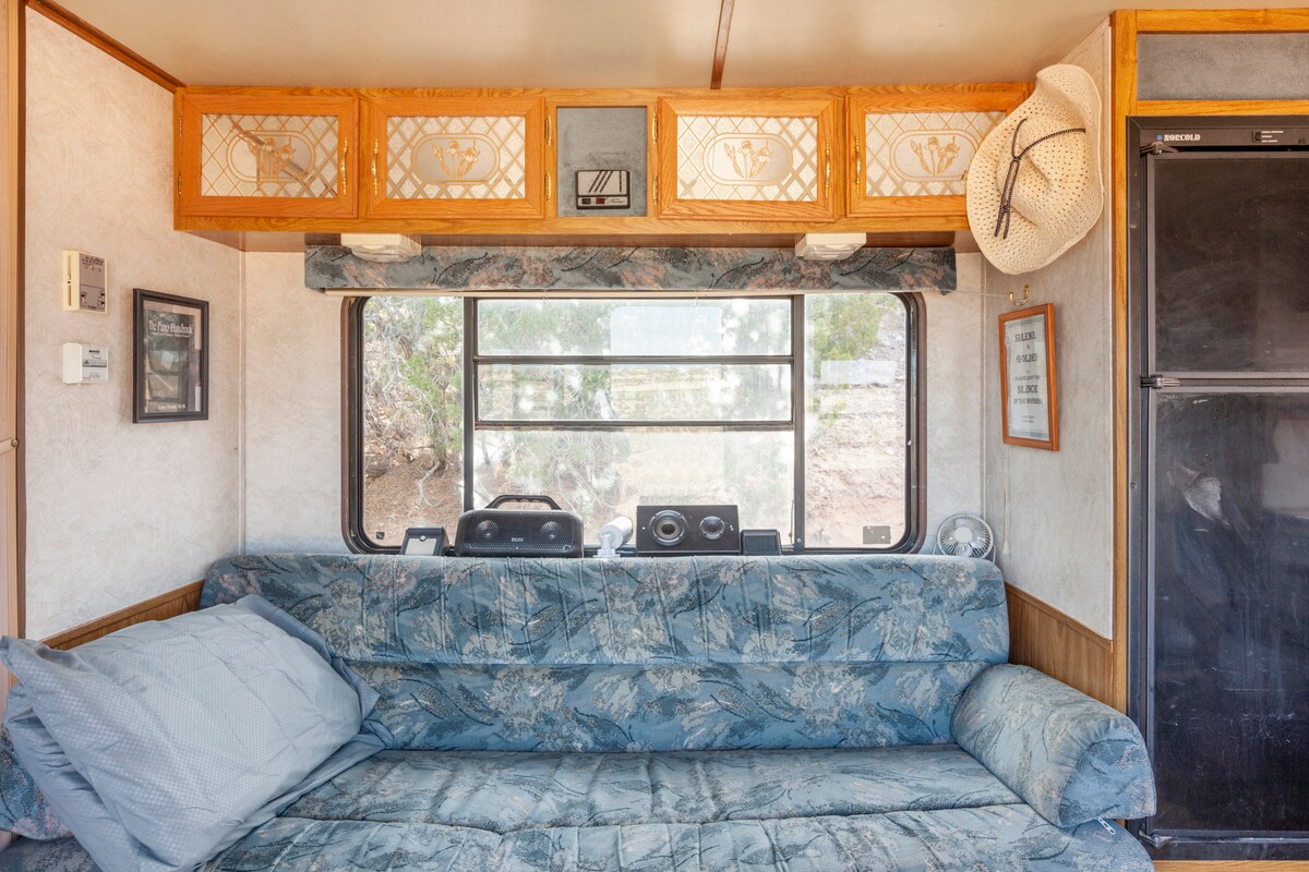Te damos la bienvenida al Bluebird at Javali Glamping Grounds. Tómatelo con calma en esta escapada única y tranquila. La puerta principal está a pocos pasos de un río tranquilo con nutrias, garzas azules, alces y mucha más vida silvestre. Este acogedor remolque de viaje tiene todas las comodidades básicas de un pequeño hogar. Puedes cocinar, ducharte, relajarte e incluso tiene un inodoro. Abiquiu es un hermoso y exuberante valle lleno de belleza natural y arte.
