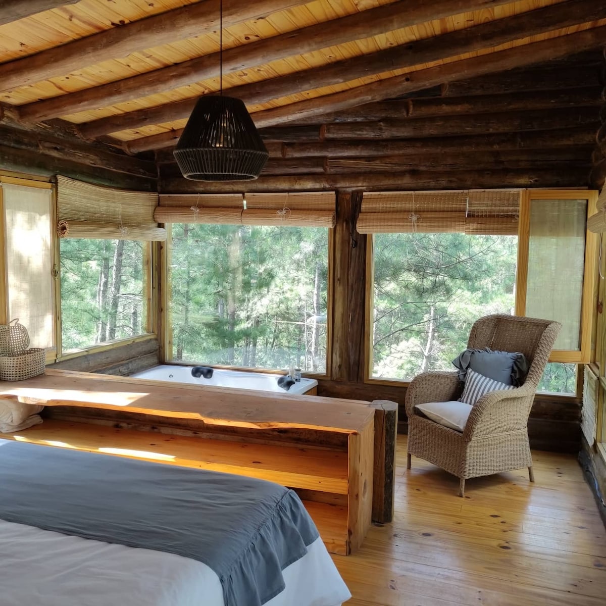 Relajate en este espacio tranquilo, cómodo y elegante, un rincón sereno en las sierras de Córdoba. El acogedor dormitorio te espera para un descanso reparador en el medio del bosque. Disfruta de la naturaleza, de las vistas que te dejaran sin aliento desde todas las ventana. Podes contratar cabalgatas,realizar lindas caminatas disfrutando de los espectaculares atardeceres, pasear por los ríos cercanos, visitar La Cumbrecita.