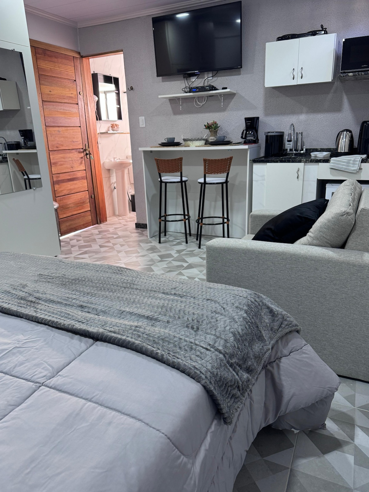 Bienvenido a Pelotas, una ciudad antigua con muchas opciones de ocio. El espacio es perfecto para 2 personas, pero tiene capacidad para 4. Totalmente amueblado, tendrá todo lo que necesita para tener días cómodos, tranquilos y agradables en un espacio limpio, silencioso, bien iluminado y organizado. Cuenta con aire acondicionado frío/calor en el dormitorio, wifi, Smart TV de 32", cocina completa con varios electrodomésticos, ropa de cama y toallas, secador de pelo, calentador de toallas eléctrico, sillón con masajeador.
