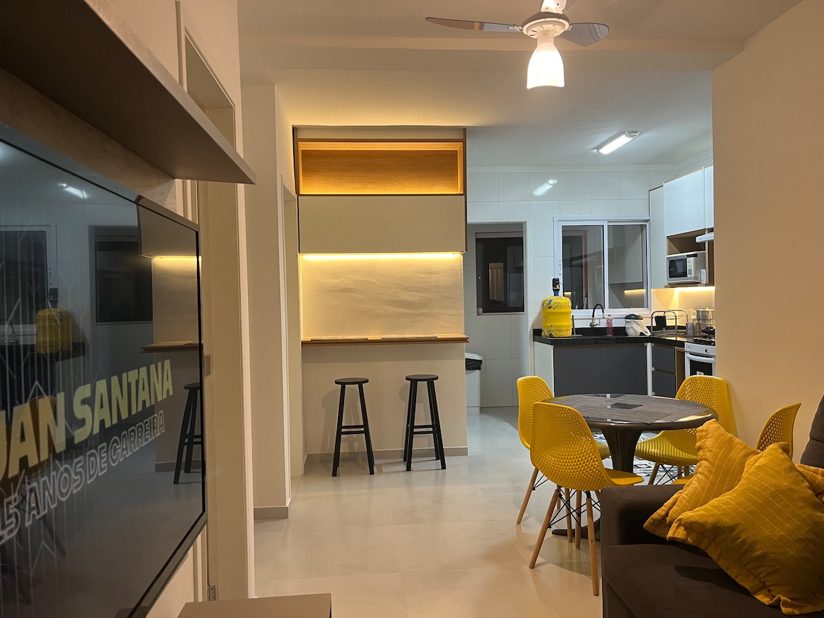 ¡Siéntete como si estuvieras en tu casa de playa! Apartamento bien decorado y muy bien equipado, con aire acondicionado frío y caliente en los dos dormitorios (01 suite), sala y suite con TV, internet de alta velocidad, Netflix, HBO, Wi-Fi. Su familia estará cerca de todo, excelente ubicación: 2 hipermercados, 3 farmacias, restaurantes, Burger King y feria libre, Praia da Enseada a una cuadra. Posible Self Check in, *traer ropa de cama y toallas.