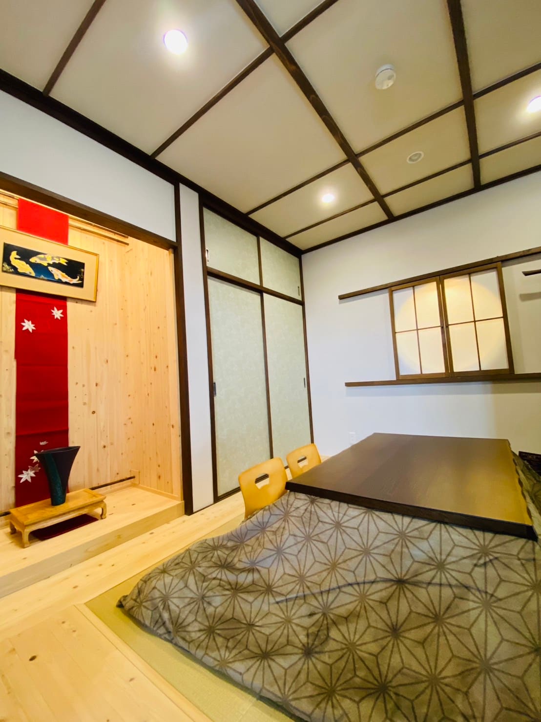 A 30 minutos en coche del aeropuerto de Takamatsu y de la estación de Takamatsu, es la base perfecta para disfrutar de un viaje por la zona de Setouchi en coche de alquiler o en tren. Si es necesario, ofrecemos traslados gratuitos desde la estación de Takamatsu y el aeropuerto de Takamatsu. También cuenta con 10 plazas de aparcamiento gratuitas, por lo que es ideal para familias con niños y grupos de amigos. Es una casa de 43 años de antigüedad, reformada en un estilo puramente japonés, con un jardín japonés y 4 habitaciones con sala de estar, comedor y cocina. Disfrute de la naturaleza en cada estación del año, como un paseo matutino mientras ve el sol naciente desde Sanuki-Sanzan desde la altura de Goshikidai, donde se encuentra una ubicación excelente. Además, podrá disfrutar de un relajado paseo por Kagawa, visitando los jardines de bonsáis, el templo de Kokubun-ji, que cuenta con 80 estaciones, y el camino de peregrinación de Omichi. En la cabaña de flores, también se puede disfrutar de comidas y barbacoas en la cocina americana. Es la base perfecta para disfrutar de un viaje de un día a Setouchi, ya que se puede llegar a Kotohira en 40 minutos en coche de alquiler, a los principales lugares turísticos de Kagawa como Chichu-ga-hama en 1 hora, y a Tokushima-Soya, Okayama y Kurashiki en 1 hora y 30 minutos. Interacción con los huéspedes Puede utilizar libremente la sala de gran pino de la casa principal. Se requiere reserva con 3 días de antelación para la barbacoa. Otros puntos importantes Puedo hablar un poco de inglés, pero principalmente nos comunicaremos con Pocketalk.