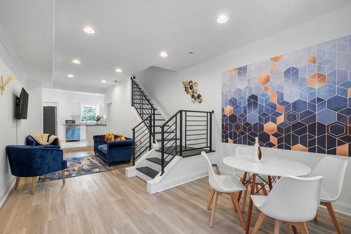 🏟️ A minutos del complejo deportivo Estacionamiento 🚗 gratuito para 1 auto Wifi ⚡ de 500 Mbps Configuración 👨👩👧 para familias 🛏 Capacidad para 6 personas 🍳 Cocina totalmente equipada. 📍 Camina hasta Liberty Bell, Penn 's Landing y Riverfront ¡Alójate con estilo en este elegante condominio de 2 dormitorios de dos niveles en el corazón de la Ciudad Vieja, Filadelfia! Disfruta de ESTACIONAMIENTO GRATUITO, wifi de 500 Mbps y comodidad familiar a pocos pasos de Riverfront, Independence Hall, los mejores restaurantes de Filadelfia y a poca distancia en auto del estadio y el complejo de eventos.