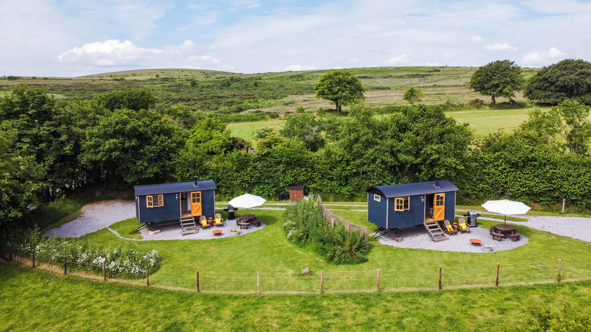 Alojamiento de lujo en una granja activa en las colinas de Dartmoor, situado en un pequeño prado cerca de la granja, junto al páramo abierto, con preciosas vistas de Dartmoor y más allá. Paseos por la colina, un paseo suave, natación salvaje y pura relajación, todo accesible sin tener que subir a tu coche. Cada cabaña es totalmente independiente y cuenta con una cama doble, asientos, zona de cocina, ducha, inodoro y una estufa de leña para esas noches acogedoras. ¡En el exterior habrá un pozo para hacer fogatas, barbacoa, asientos y oportunidades para observar las estrellas!