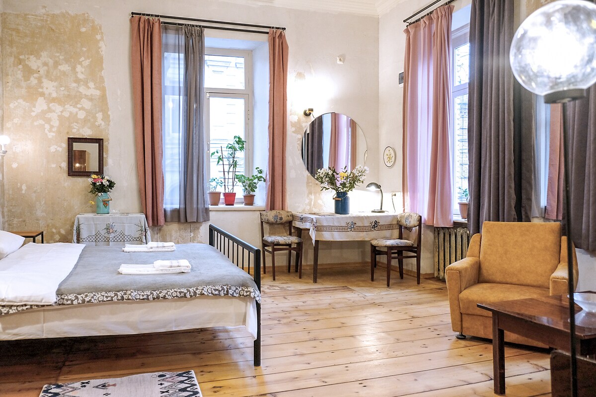 Estudio INDUSTRIAL en antiguo edificio soviético diseñado por "VIRSTAK", aporta un ambiente único con espectaculares VISTAS A LA CIUDAD de día y de noche agradables desde la BAÑERA. -100 % HECHO A MANO. - No es un apartamento acogedor/funcional AL AZAR, las comodidades de los estudios consisten en muebles antiguos e industriales, para algunas personas podría sentirse incómodo salir de un gusto personal. Ambiente artístico que te hace sentir como en las películas. - BODEGA - 9 TIPOS de vino - Proyector de cine Traslados de/al aeropuerto Suzuki Swift 80 Gel