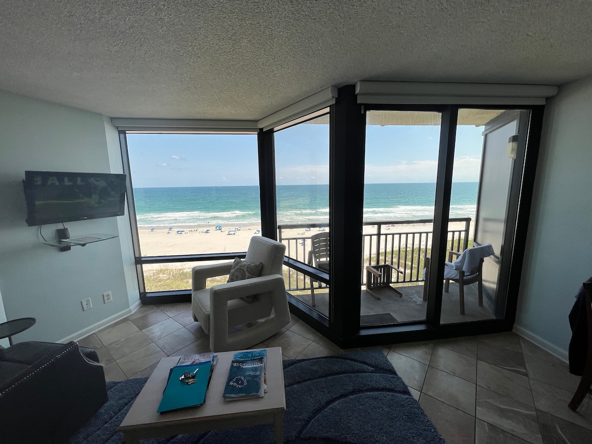 Condominio frente al mar a solo unos pasos de la arena en el extremo norte prístino de Wrightsville Beach, Carolina del Norte. Esta unidad de planta baja en Shell Island Resort proporciona acceso directo al paseo marítimo de la playa, las piscinas interiores y al aire libre, la bañera de hidromasaje, el restaurante completo y el bar exterior. Una pasarela al aire libre conecta la entrada del condominio a la plataforma de estacionamiento, así que no es necesario caminar por el vestíbulo ni usar ascensores; lo que permite un distanciamiento social seguro durante toda tu estancia.