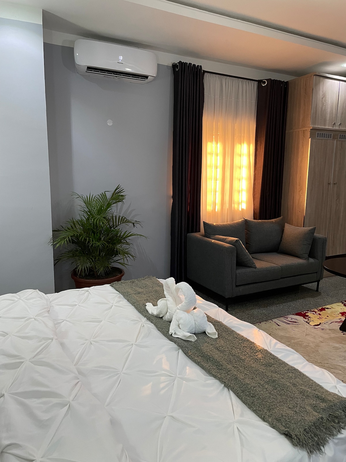 Este apartamento estudio ofrece iluminación las 24 horas en un entorno sereno, convenientemente ubicado en una carretera principal. Se encuentra a 15 minutos en coche del aeropuerto y a 16 minutos en coche de gra. El apartamento viene equipado con: - Sistema de inversor - Cámara CCTV - Netflix. - Wifi - Aire acondicionado. - Android TV. - Refrigerador. - Cocina equipada. - Almohadas de espuma semiortopédica y fibra Tu comodidad está garantizada