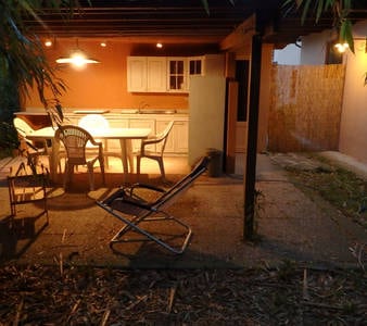 Te ofrecemos en el interior un jardín verde, una caravana con una cama doble y una cama individual, una gran cocina exterior equipada bajo un toldo, baño con ducha. También te proporcionamos tres bicicletas, el equipo para el mar. El camping está muy cerca de la parada de autobús y la estación de tren.