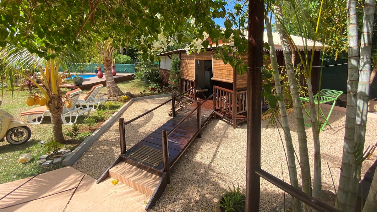 ¡Te damos la bienvenida a Coco Bungalow! 🌴 Ubicado en una zona tranquila y rodeado de un exuberante jardín tropical, este acogedor bungalow te invita a una relajante escapada en Mauricio. Disfrutarás de una piscina compartida con nuestros otros dos bungalows, Café y Cannelle Bungalow, perfectos para alojar a amigos o familiares cercanos. A solo 5 minutos a pie de la playa, el supermercado más cercano y varios restaurantes, Cannelle Bungalow combina relajación y comodidad.