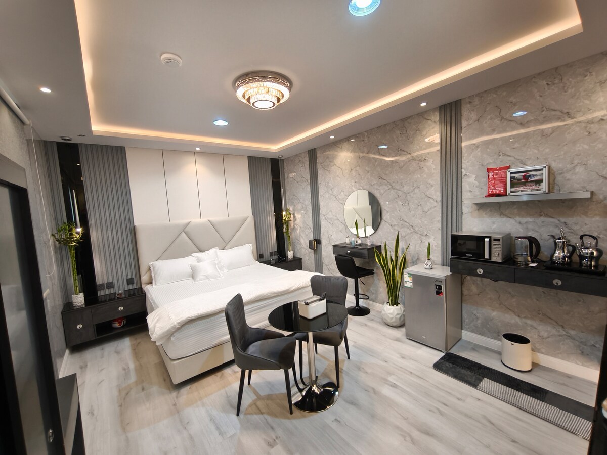 Disfruta de la magia de este elegante y exclusivo alojamiento. Estudio de hotel de lujo dentro de una torre residencial La recepción, el vestíbulo, la cafetería, la lavandería, el gimnasio y el estacionamiento con sombra de Makhdoom están a solo 2 minutos a pie de la estación de metro.