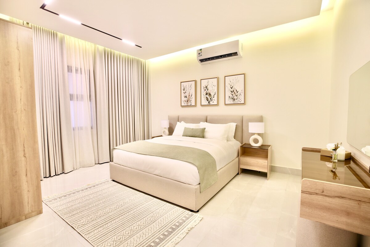 Este alojamiento único tiene su propio estilo. Distancia a: - Riyadh Park - 10 minutos - Parque histórico de Diriyah: 18 minutos - Aeropuerto Internacional Rey Khalid 24 minutos - Boulevard Riyadh City 18 minutos - Wonder Garden 19 minutos - Centro Financiero Rey Abdullah (KAFD) 16 minutos - Via Riyadh 21 minutos