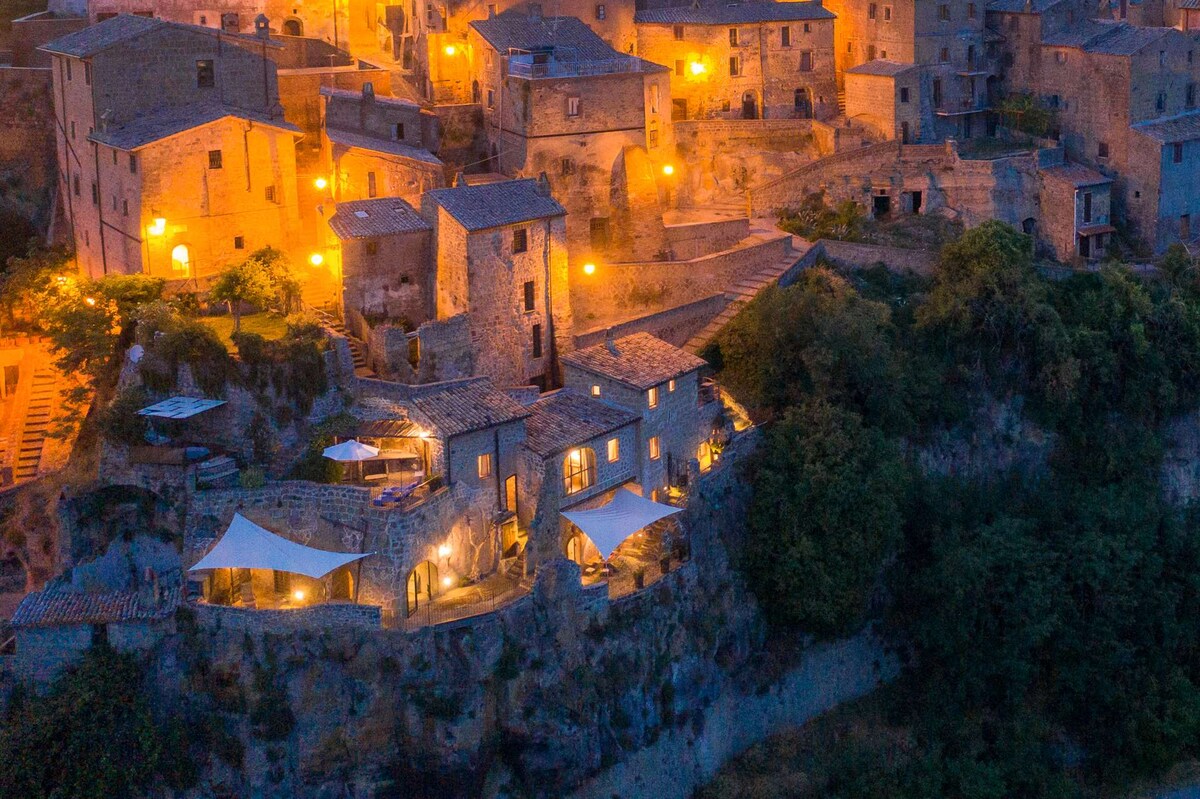 L'appartamento é due piani sotto la piazza, interamente scavato nel tufo. Con vista sulla valle, é isolato dai rumori della strada, tranquillo, privato e molto accogliente. Le pareti in tufo gli donano un'aria antica, per trasportavi altrove nel tempo. Si raggiunge a piedi, attraverso un ponte pedonale che vi porta direttamente nella piazza dove c'é l'immobile. É perfetto per brevi soggiorni di completo relax, ma con la cucina totalmente attrezzata si sfrutta al massimo.