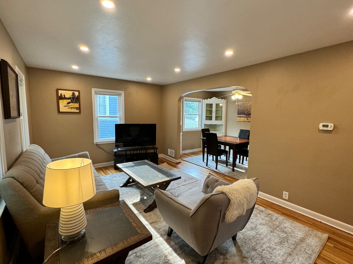 Acogedor dormitorio de un solo nivel, 1 baño. Cocina totalmente amueblada con TV, WiFi y cerradura inteligente. Está a 1,6 millas de la Clínica Mayo. Distancia a pie a Historic Quarry Hill Park y Silver Lake Park. Línea de autobús de la ciudad a Mayo Clinic a media cuadra. Baño recién remodelado con ropa de cama completa y artículos de tocador. Barrio tranquilo, con estacionamiento completo en la entrada. También contamos con una puerta para bebés para las escaleras. ¡Disfruta de tu próximo hogar lejos de casa !