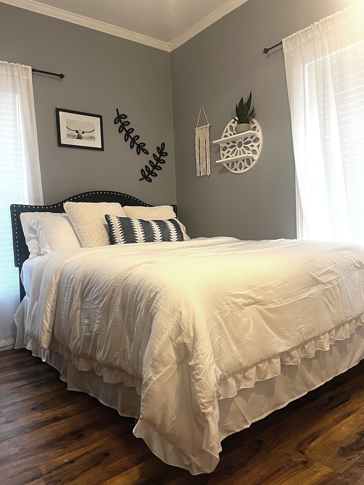 Precioso apartamento, espacio privado. Comedor y sala de estar abiertos y amplios. Cocina bien equipada: nevera, cocina/horno completo, microondas, tostadora, licuadora, cafeteras, ollas, sartenes, platos, utensilios. Productos para preparar el desayuno a mano. Sala multimedia con TV inteligente, asientos cómodos, estación de trabajo con ordenador. Dormitorio principal grande y espacioso con cama tamaño king o se puede cambiar por dos individuales. El baño se encuentra junto al dormitorio, ducha a ras de suelo, sin bañera. Playas, el centro de Wilmington, UNCW, todo a 15 minutos en coche.