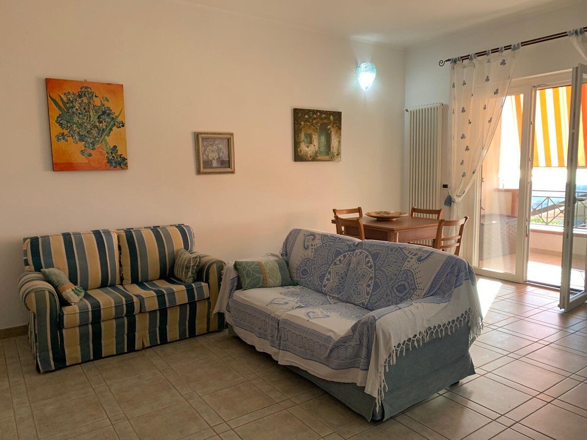 La casa está en una zona segura y tranquila, en el corazón del "Parco del Gargano". Disfrutarás de una vista increíble sobre el mar. El apartamento tiene una ubicación ideal para viajeros solitarios, parejas o familias (¡con hijos también!). Puede albergar hasta 6 personas, está completamente amueblado y compuesto por: gran sala de estar con un sofá cama individual; cocina de planta abierta (equipada con horno, lavavajillas y nevera); 2 dormitorios dobles (cama doble/ dos camas individuales); 1 dormitorio individual; 2 baños con ducha; lavadora.