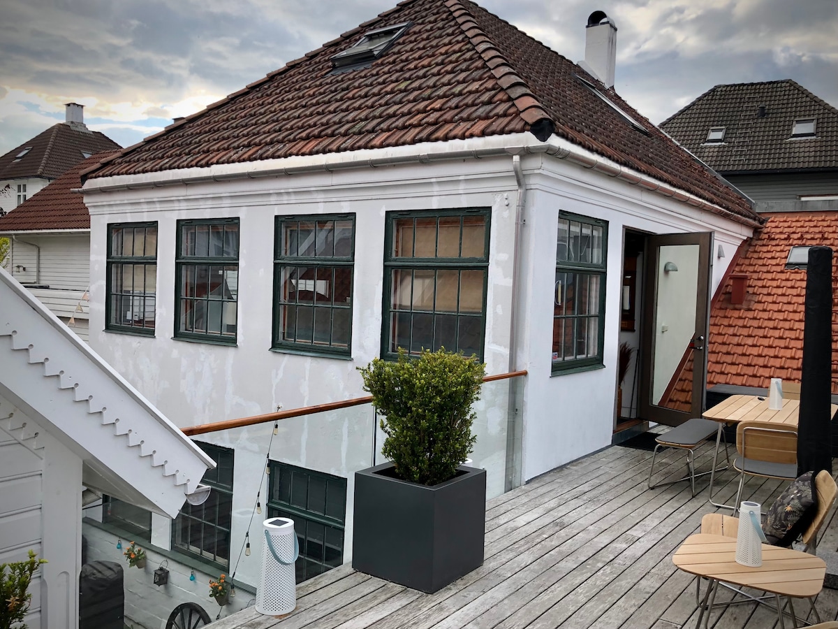 Le deseamos la bienvenida a este apartamento muy especial ubicado en medio de un edificio de 1929 diseñado industrial maestro ebanistas/taller ebenista. El apartamento es espacioso, con baño moderno, cocina, comedor, 2 salas de estar con TV, aire acondicionado, grandes ventanas, camas para 4/5/6 personas, un acogedor patio trasero y terraza; todo situado en una zona muy al oeste de las casas adosadas. Se encuentra a 2-6 minutos a pie del centro de la ciudad, puerto, ferrocarril y autobuses. Varias tiendas de comestibles y restaurantes a 40-80 metros de distancia.