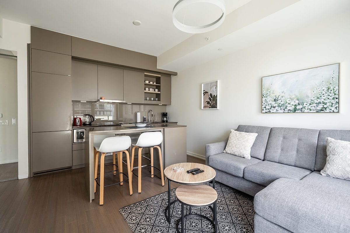 Escape to luxury in our 1-bedroom Toronto haven! Enjoy just 5 minute walk to CN Tower and Roger center and 5 minutes ride from billy bishop airport Nestled in a prime Downtown Toronto area, our home boasts luxury furnishings for our guests. Perfect place for your events . Enjoy the seamless blend of comfort and convenience with easy access to highways and the subway and street cars. Unwind in the expansive, Spectacular Views, Comfort and Entertainment.
