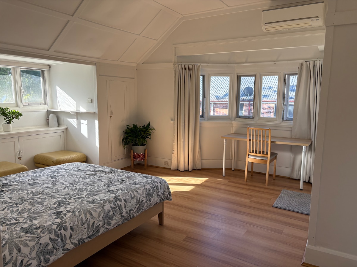 "Bienvenido a mi casa bellamente decorada, un refugio verde y lleno de arte lejos del bullicio. Si bien la ubicación es excelente para explorar Sídney, la casa en sí es un santuario tranquilo. Compartirás un alojamiento lleno de una decoración cuidadosa y plantas que crean un ambiente suave y relajante. Es el lugar ideal si buscas un lugar tranquilo para concentrarte en el trabajo o simplemente necesitas una base acogedora para descansar la cabeza". ¡Serás bienvenido en mi alojamiento!
