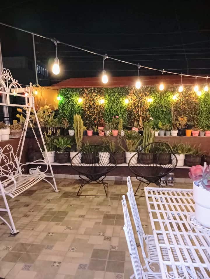 - Renta de alojamientos vacacionales con área de asientos al aire libre en Puebla