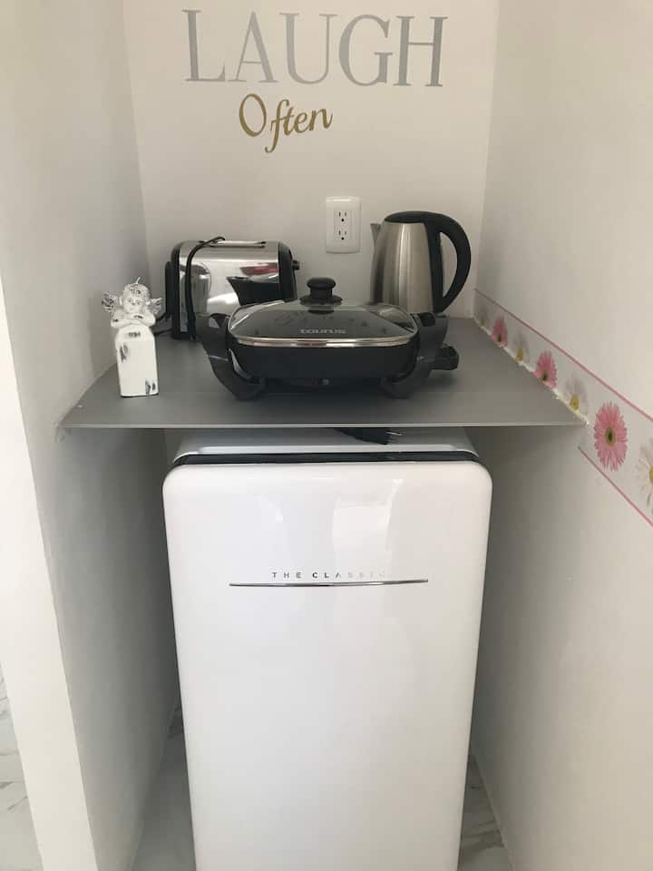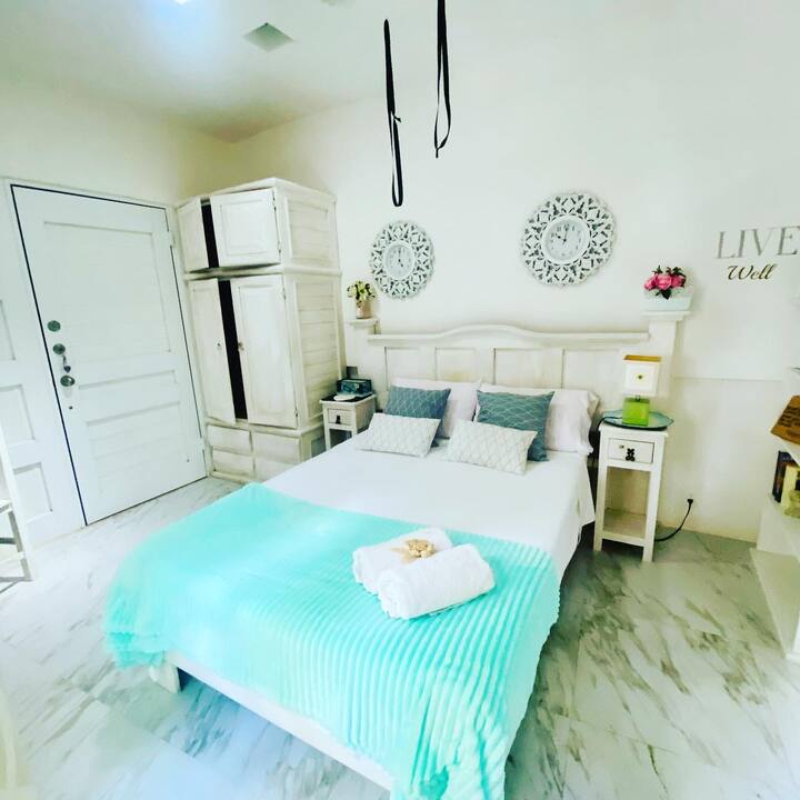 1) ESTUDIO, como una casa en miniatura, una "minicasa", un espacio con todos los servicios de una hermosa casa para disfrutar y descansar de unas ricas vacaciones, es una habitación con su entrada independiente con baño privado, para 1 o 2 personas.