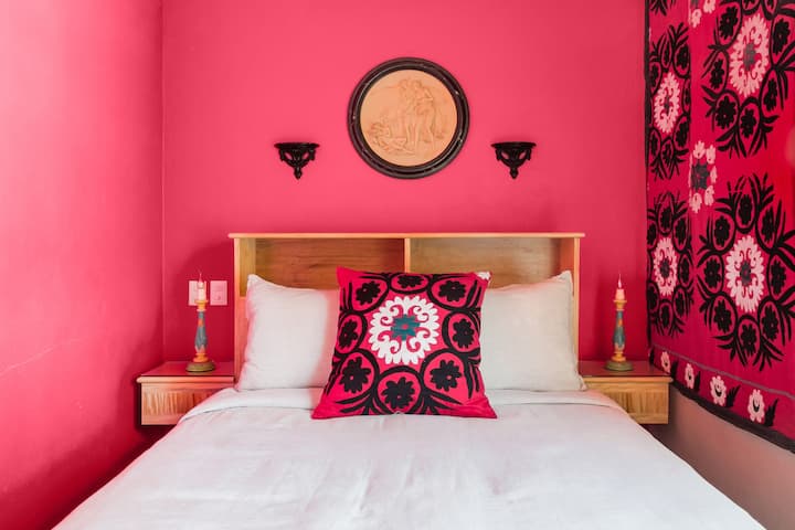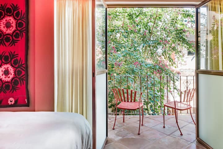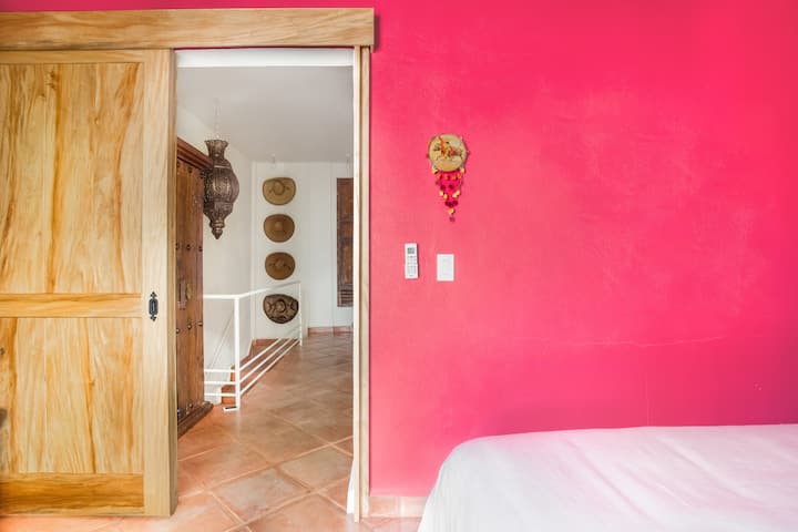 Abre las puertas francesas de un dormitorio decorado en un apasionado fucsia y sal a un balcón con vistas al famoso árbol de las orquídeas de Villa Colibrí MX. El arte hecho a mano y los objetos de colección vintage dan a cada habitación un sabor local distintivo. Sumérgete en una piscina de agua salada climatizada, disfruta de los jardines del patio o relájate en el bar y el salón con vistas al mar.