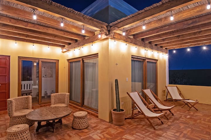 Con su verde jardín, plantas de lujo y piscina infinita, Casa Hormiga se siente como un oasis de frescura y naturaleza en medio del desierto de Baja California. Desde sus terrazas, puedes disfrutar de impresionantes amaneceres y puestas de sol, con vistas al mar de Cortés, las montañas del desierto y toda la bahía de La Paz. En Casa Hormiga, queríamos compartir nuestro amor por México, tradición, modernidad y sostenibilidad. ¡Bienvenido a casa!