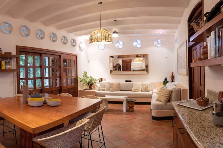 Por eso, en Casa Hormiga, hicimos una promesa de sostenibilidad. Construida en un estilo de hacienda tradicional con techos de cinco metros de altura, Casa Hormiga es una casa abierta con un sofisticado sistema de circulación de aire natural, que enfría de forma sostenible la casa la mayor parte del año. Si todavía necesitas usar aire acondicionado, también aprovechamos lo mejor de la modernidad y agregamos paneles solares para reducir la huella de carbono de tu estancia.