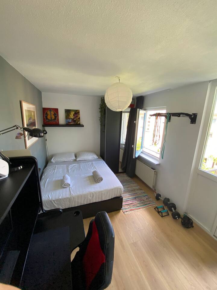 Una habitación con wifi apta para trabajar.
