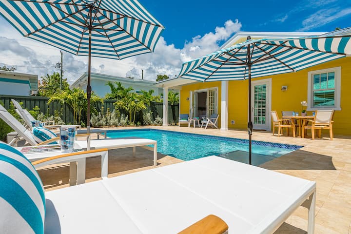 Entra en este vibrante refugio de Palm Beach con decoración colorida, muebles de lujo y una vida interior y exterior sin fisuras. La casa principal tiene capacidad para 6 personas con una suite tamaño king que se abre a la terraza de la piscina, un dormitorio tamaño queen y una habitación doble, mientras que la casa de la piscina privada tiene capacidad para 2 personas. Disfruta de una cocina de chef, elegantes salas de estar y comedor, impresionante piscina y patio, bicicletas y equipo de playa, perfecto para relajarse, entretenerse y crear recuerdos familiares duraderos.