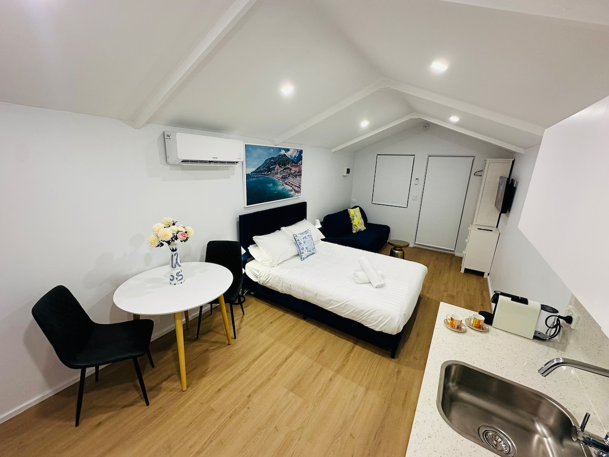 Kick back & relax in this Private Detached Stylish Studio Apartment, Aircon. Sleeps 2 guests. Perfect for Long or Short term stays. 1 Luxury Queen size beds. Fully equipped kitchen with European appliances, Tea & Nespresso Coffee machine, Courtyard. 2 mins from Westfields Shopping Mall. Restaurants & cafes at your fingertips. 5 mins drive to M4 & M7. Close to all public transport. 43 mins from Sydney Airport & CBD. 4 Mins drive or a 15 min walk to St Mary's Train Station. Blue Mountains 20 mins.