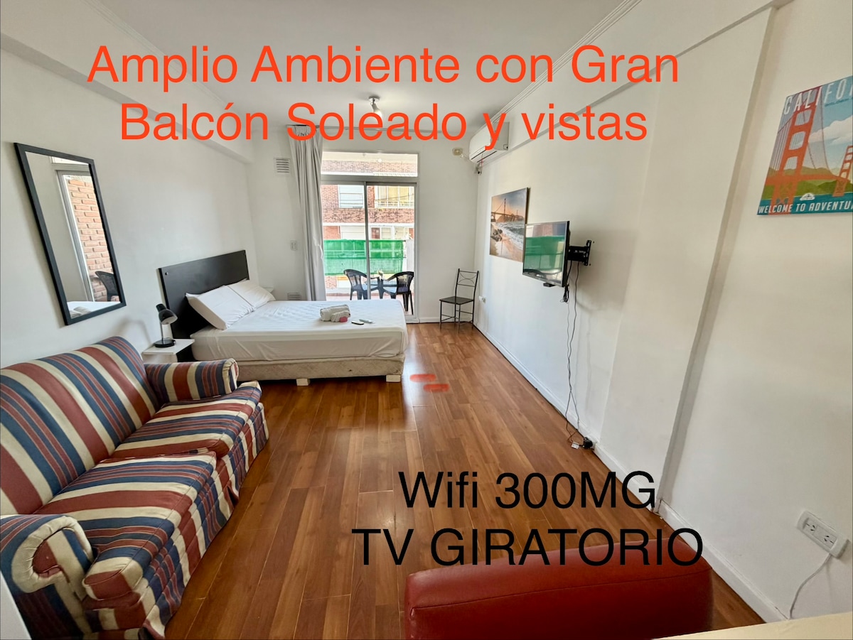 Monoambiente moderno y luminoso - Patio privado con mesa y sillas - Parrillero y solárium en la terraza del edificio - Cocina completa: heladera, microondas, cafetera, pava eléctrica, vajilla - WiFi rápido, aire acondicionado frío/calor y Smart TV Baño moderno con ducha, secador de pelo, shampoo, acondicionador y jabón - Cama doble con acolchado premium - Aspiradora, plancha y todo lo necesario para una estadía prolongada - Seguridad monitoreada en el edificio Todo completo y a estrenar!