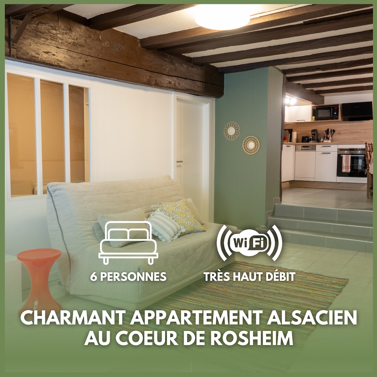 Casa completa enclavada en el centro de Rosheim. Situado en el corazón de la región de Alsacia, en la ruta del vino entre los Vosgos y Estrasburgo. Este alojamiento de casi 100 m2 consta de un gran espacio abierto en el primer nivel que incluye una gran sala de estar, un comedor y una cocina equipada. La planta superior tiene dos dormitorios y una zona de trabajo y relajación. El alojamiento fue completamente renovado en 2024 y redecorado en torno a creaciones de ebanistería en un ambiente relajante y cálido.
