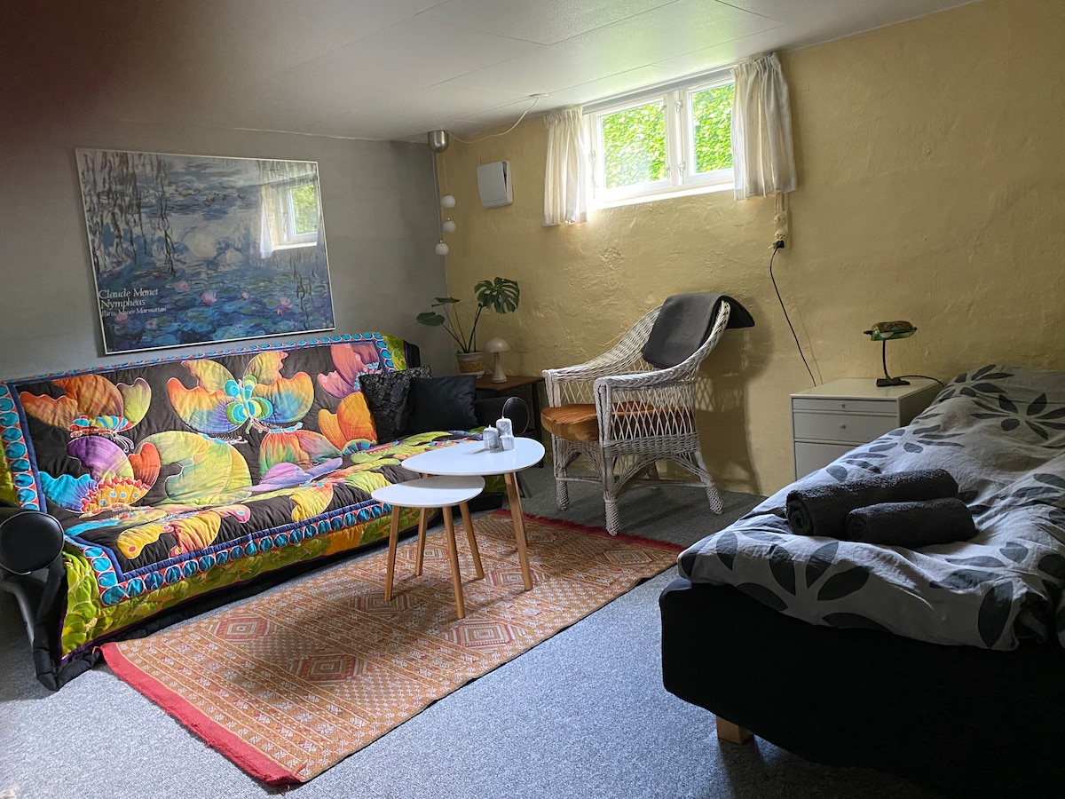 Departamento en el sótano de 2 dormitorios en villa, en un barrio tranquilo cerca del centro de la ciudad y Roestorv Hay una entrada privada, un baño privado y un baño, así como una cocina con casi todo lo que necesitas. Cama doble de 140 cm de ancho, así como un sofá cama, en la misma habitación. Puedes caminar hasta la estación de Roskilde en 10-15 minutos, desde donde puedes estar en Copenhague en 25 minutos y Odense en 45 minutos. Hay estacionamiento gratuito en la calle fuera de la casa. Wifi rápido. A unos 30 minutos a pie de la Catedral de Roskilde y el Museo del Barco Vikingo.
