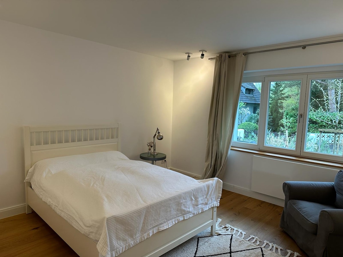 Este elegante apartamento de una habitación ha sido reformado con esmero y con mucha atención a los detalles. Desde el apartamento se puede disfrutar de una vista de ensueño del bosque más bonito de Renania. Los techos de 2,7 metros de altura y la claraboya dejan pasar la luz del sol y crean un ambiente luminoso y abierto con vistas al cielo. La calefacción por suelo radiante, que difunde un agradable calor, garantiza el máximo confort. La ducha de efecto lluvia a ras de suelo convierte la hora de la ducha en un momento de puro relax.