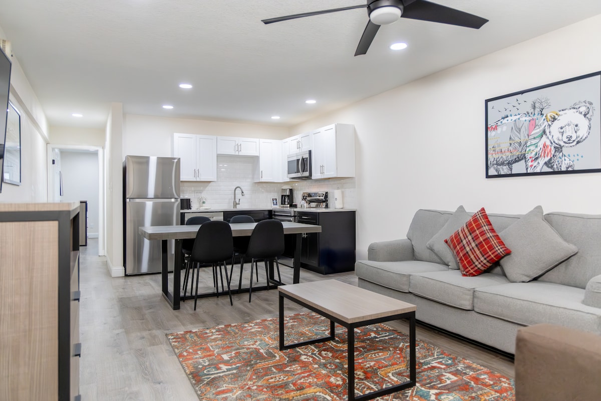 Excelente unidad de estilo condominio de dos dormitorios en un entorno de resort en el corazón de Steamboat Springs. A poca distancia en auto o (toma el servicio de traslado de la ciudad) a las pistas, y un montón de servicios del centro vacacional (piscina, gimnasio, jacuzzi, etc.). Tu unidad tiene una cama king en el dormitorio principal y una cama queen en el segundo dormitorio más un sofá cama en la sala de estar. La cocina completa, la chimenea, la lavandería en la suite y el estacionamiento gratuito son otras comodidades.