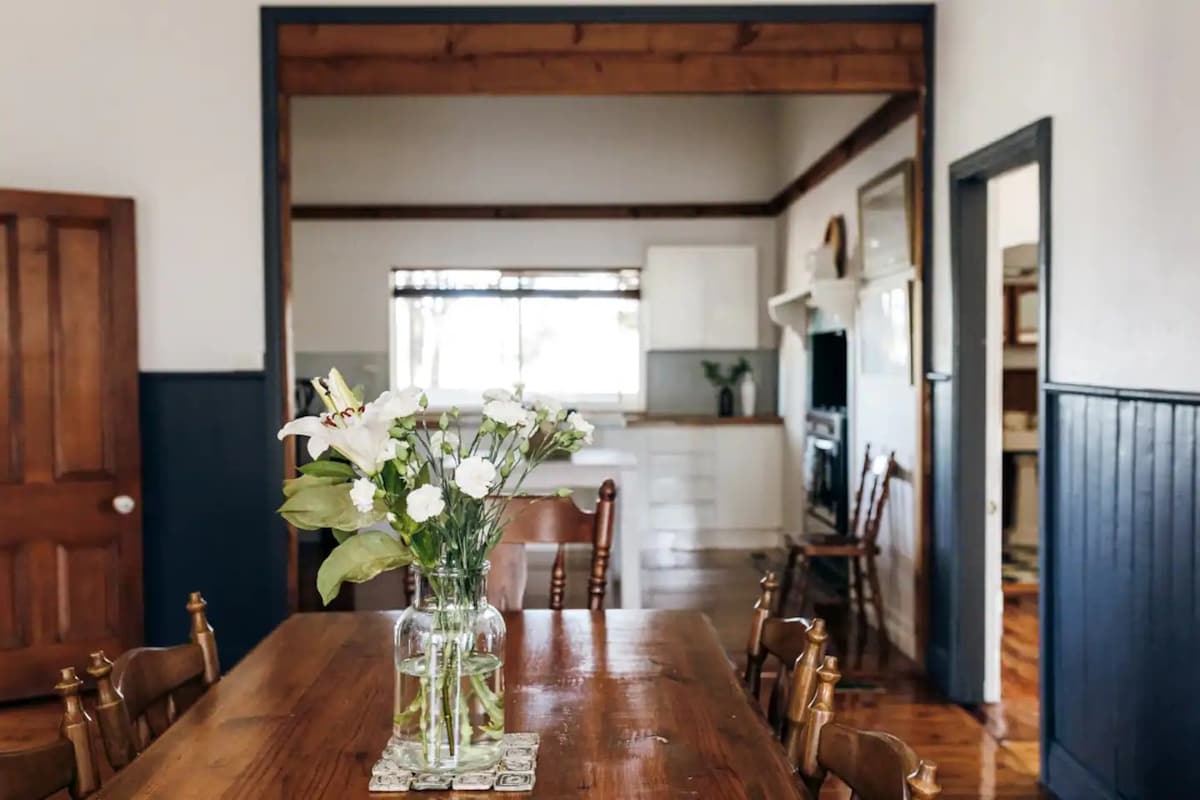 Encantadora casa de minero antigua renovada y amueblada en un estilo moderno/rural con una decoración fresca y colorida. Tres dormitorios dobles con ventiladores de techo. Ubicada en el pequeño pueblo de Wahgunyah, muy cerca del río Murray (a dos manzanas) y de maravillosos senderos para caminar o montar a caballo. También cerca de las icónicas bodegas Cofields, All Saints, Pfeiffers y más. Paseo corto sobre el puente viejo hasta Corowa. Se proporcionan desayunos ligeros. Mascotas son bienvenidas.