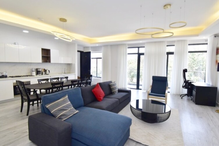 Descubre el significado del lujo en una dirección exclusiva de Kigali. Disfruta de este nuevo apartamento de lujo con piscina, a pocos pasos del campo de golf de 18 hoyos de Kigali. Con 3 habitaciones con aire acondicionado, electrodomésticos de 5 estrellas, exquisitos muebles modernos y cómodos colchones de espuma viscoelástica en las habitaciones con baño privado, esta casa irradia sofisticación de buen gusto en todas partes. Situado en el principal barrio de embajadas, HNWI, ONG, etc. de Kigali. También está convenientemente ubicado cerca del aeropuerto de Kigali, restaurantes y el centro de la ciudad.