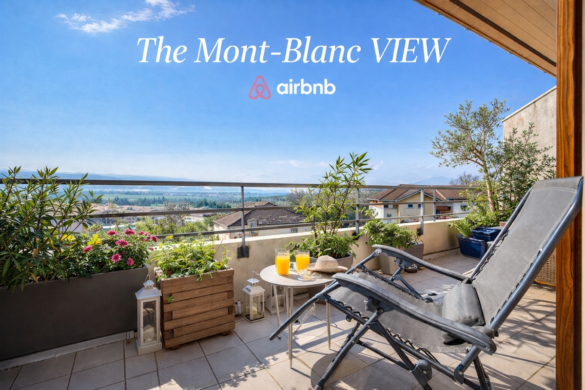 VISTA al Mont Blanc • Balcón y cerca de Ginebra/ONU
