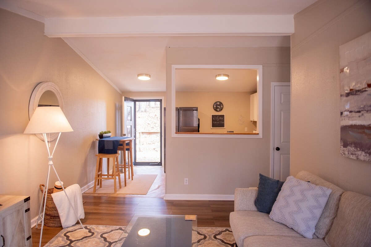 Disfruta del encantador ambiente del centro de Belmont en este cómodo apartamento. Este apartamento independiente, ubicado detrás de una casa principal a 1 cuadra de Main Street, fue una vez la tienda de trabajo de madera del propietario original. Ha sido remodelado con cariño y ahora tiene una cocina totalmente equipada, un cómodo dormitorio principal con cama tamaño queen, un pequeño dormitorio secundario con una cama doble y una sala de estar. Hay estacionamiento fuera de la calle para 2 vehículos.