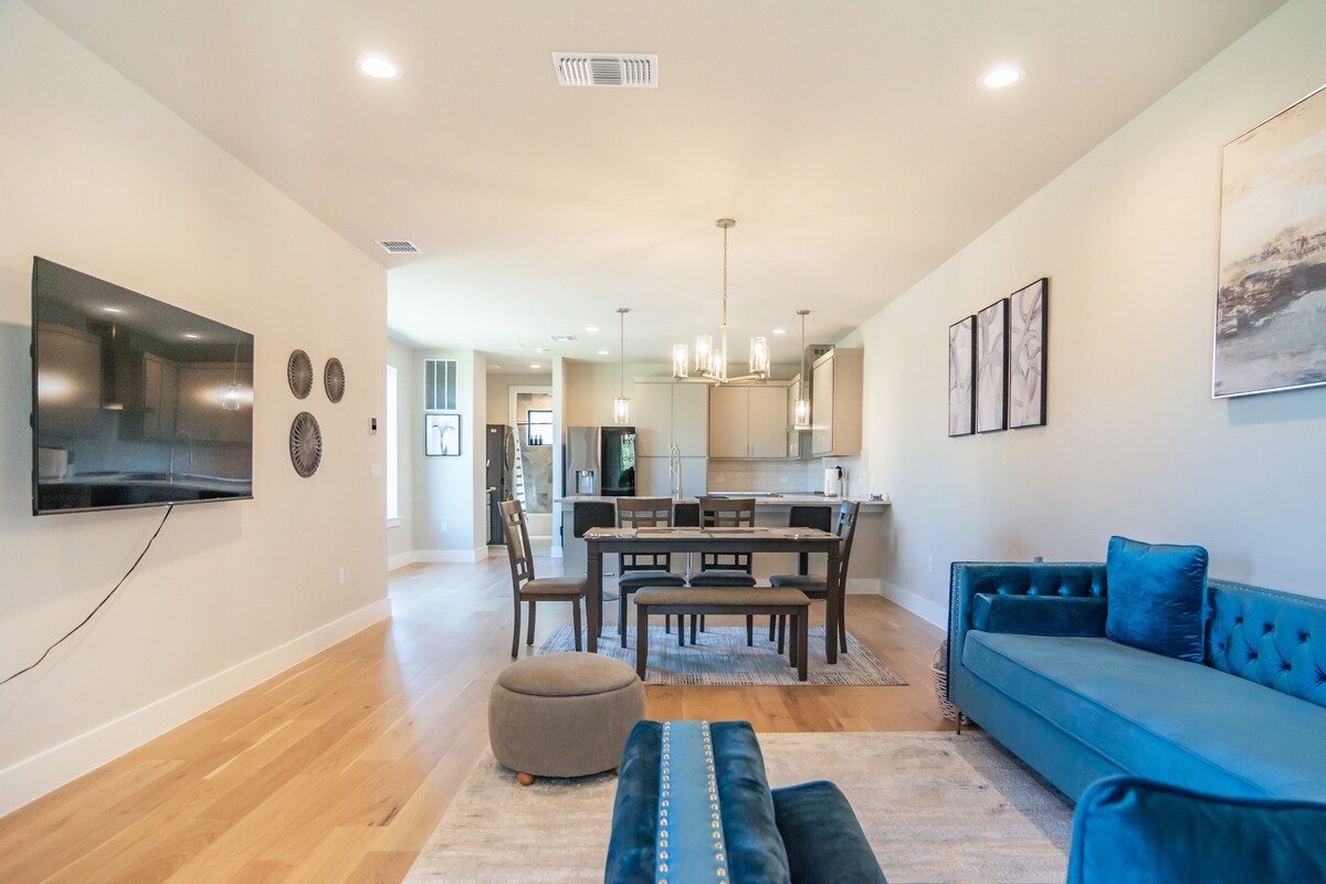 Enjoy a stylish and comfortable stay in this newly built, two-story 2B2B townhome featuring brand-new appliances, modern finishes, and a bright open-concept living space. The spacious living room provides a cozy space to relax. Each bedroom is on a separate floor for added privacy. Fully equipped kitchen, smart TVs, fast WiFi, and easy smart-lock check-in. Car rental available at a guest-only discounted rate—perfect for exploring the city with convenience. Contact us for more information.