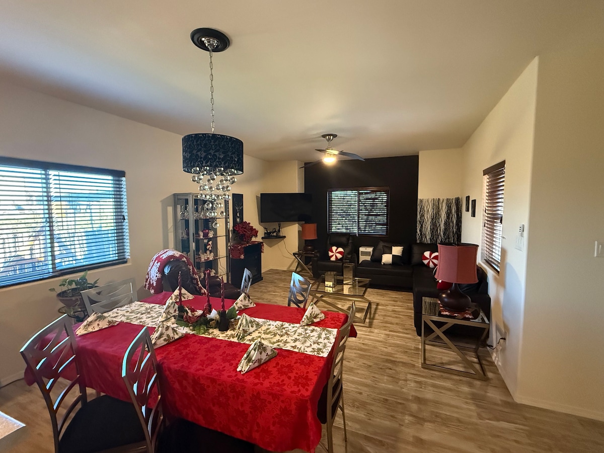 Escápate a esta serena casa de estilo rancho ubicada en Santa Fe, a pocos minutos del aeropuerto. Este refugio de 3 dormitorios y 2 baños ofrece una cocina totalmente equipada, amplias salas de estar y un patio privado perfecto para observar las estrellas. Disfruta de comodidades modernas como wifi, aire acondicionado y alojamientos que admiten mascotas. Sumérgete en la cultura local con atracciones cercanas, restaurantes y aventuras al aire libre, todo a poca distancia en auto. ¡Tu tranquila escapada a Nuevo México te espera!