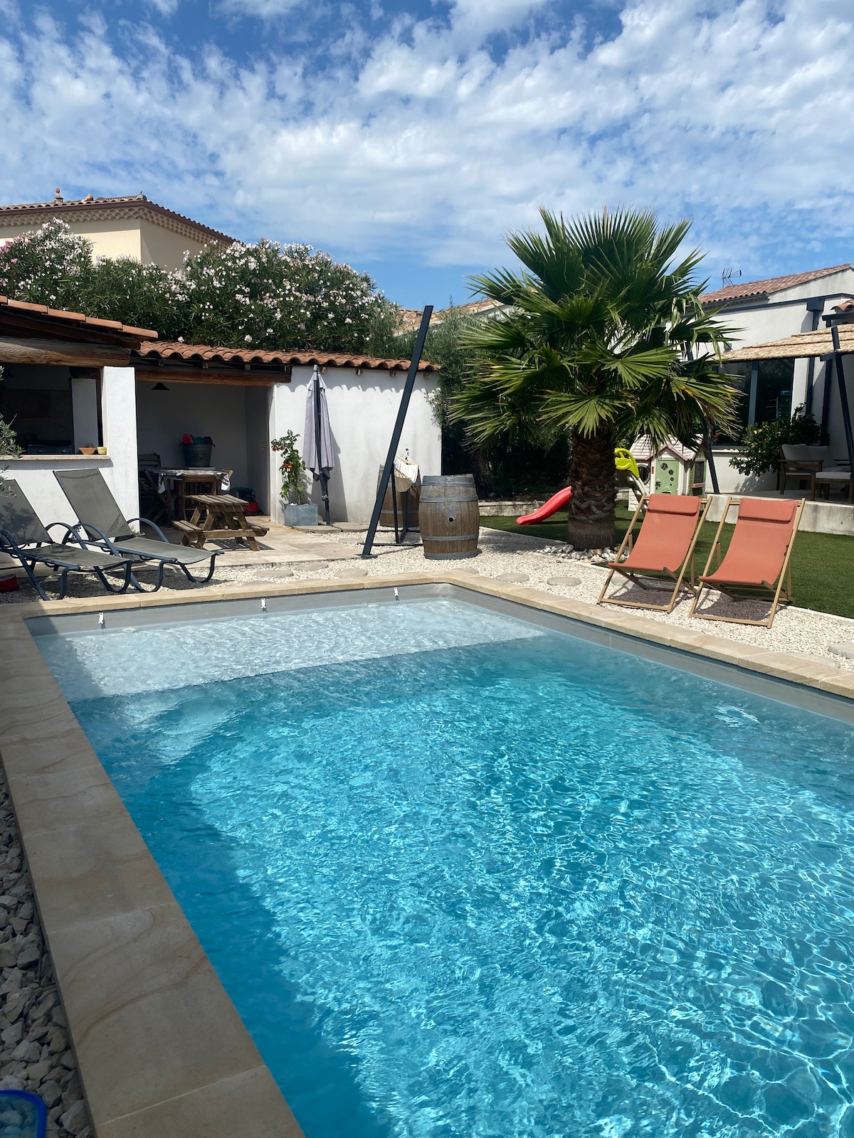 «La Maison aux Oliviers» es una pequeña masía con encanto de 90 m², con aire acondicionado, independiente y situada en un antiguo olivar, en una zona tranquila en un jardín paisajístico que ofrece una hermosa piscina privada climatizada y segura. Su amplio toldo ofrece la posibilidad de vivir al aire libre protegido del sol y del viento (mistral). Cerca del centro histórico, del mercado local y de las tiendas (a pie), está perfectamente equipada para el teletrabajo (fibra de alta velocidad)