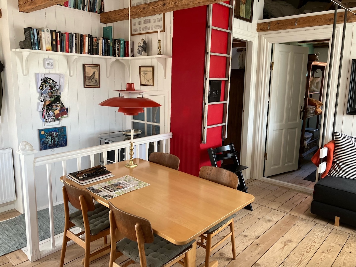 APARTAMENTO FRENTE AL MAR, MUY BIEN UBICADO, CERCA DEL CENTRO DE ODENSE - Aparcamiento gratuito y bicicletas disponibles. Situado por encima de la planta baja y decorado en un estilo escandinavo personalizado con colores tranquilos y mucha luz. Entrada privada desde una escalera/balcón, vistas al bosque y al agua. El apartamento está totalmente amueblado. Dos dormitorios, baño espacioso y una cocina/sala de estar integrada. Vivimos en la planta baja y estamos disponibles en cualquier momento. El centro de la ciudad está a diez minutos en bicicleta.